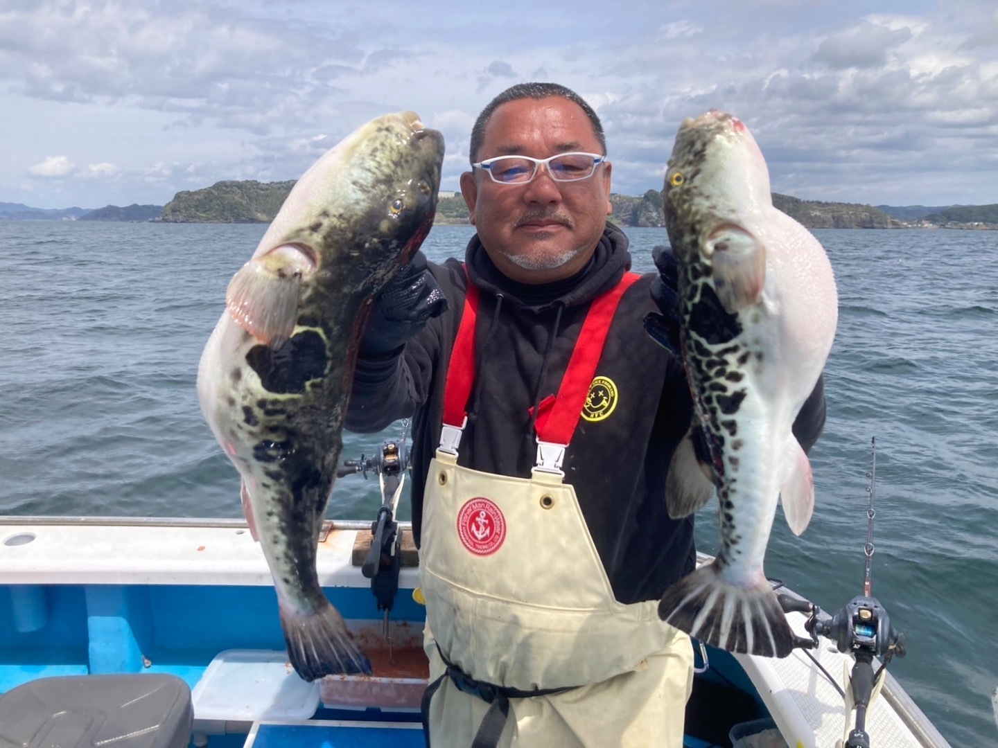 トラフグ3隻の高低釣果1.0〜3.9kg 0〜4匹