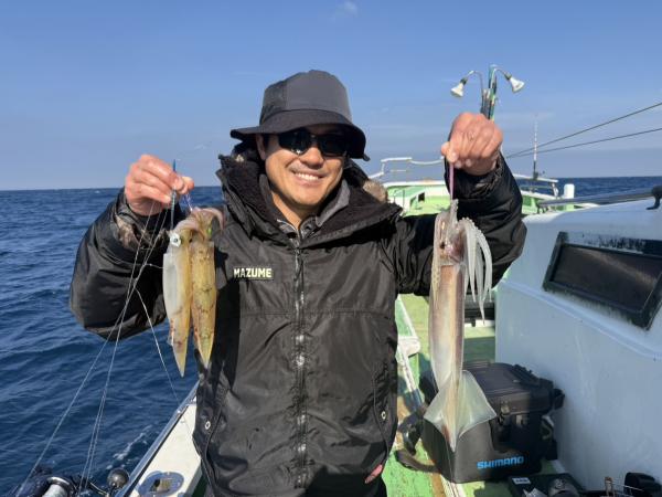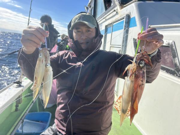 朝スルメスタートだが朝からヤリイカが混じってきたので11cmで1日ヤリイカ狙いコンスタントに乗りが有りました。