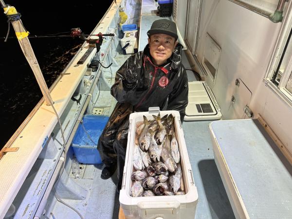 貸し竿さん含む満船でしたが皆さん顔見れて場所によっては小型が出るような所もありましたが良型出る所メインでやりポツポツと一日通して顔見れてました。