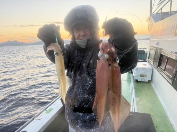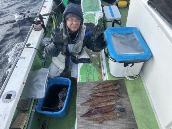 イカ釣り初チャレンジのお客様3名で 8.9.12匹でした。 20杯クリアの方が殆どでした。