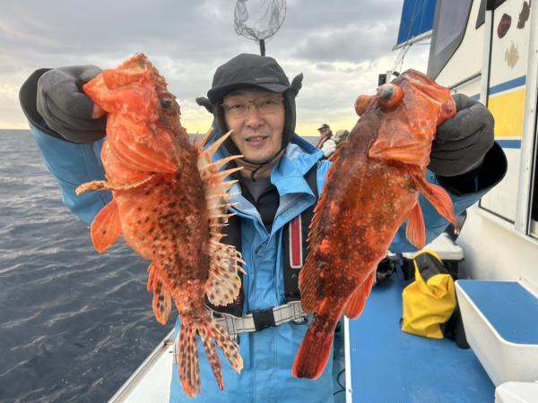 オニカサゴのアタリ少なかったが外道でお土産になりました。