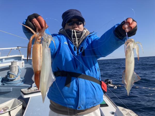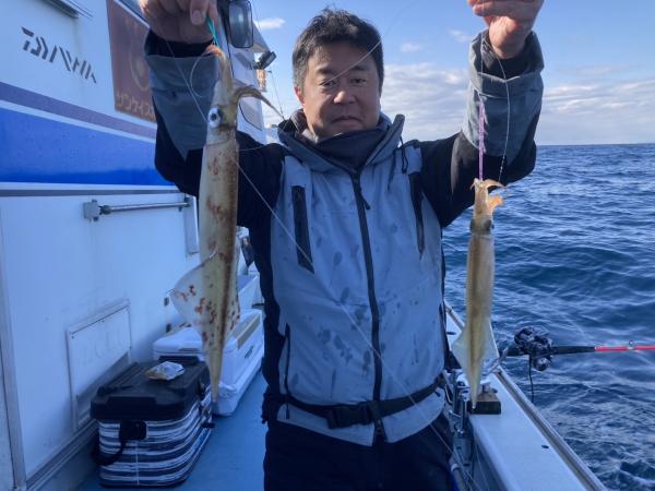 朝はスルメ狙いで頭10杯その後白浜沖でヤリイカ狙い