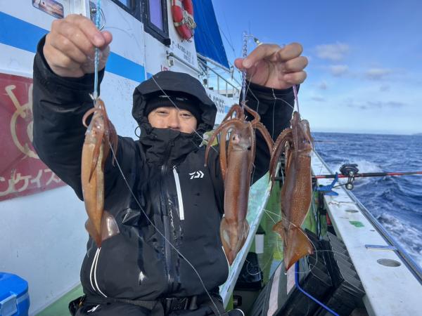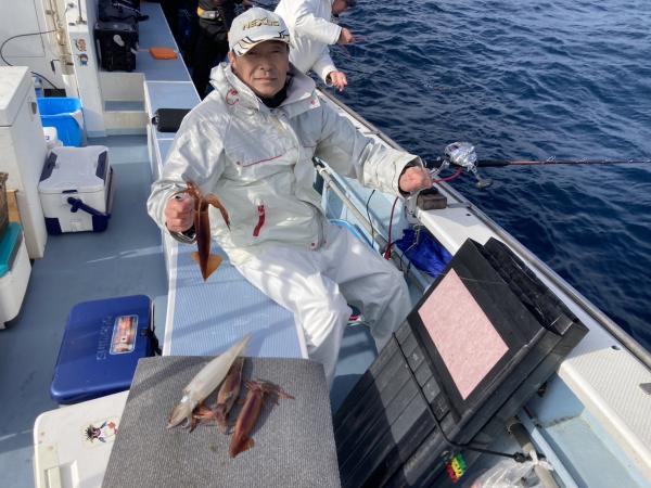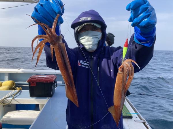白浜沖前半好調も次第に反応が少なくなって尻窄みでした ヤリイカ混じる