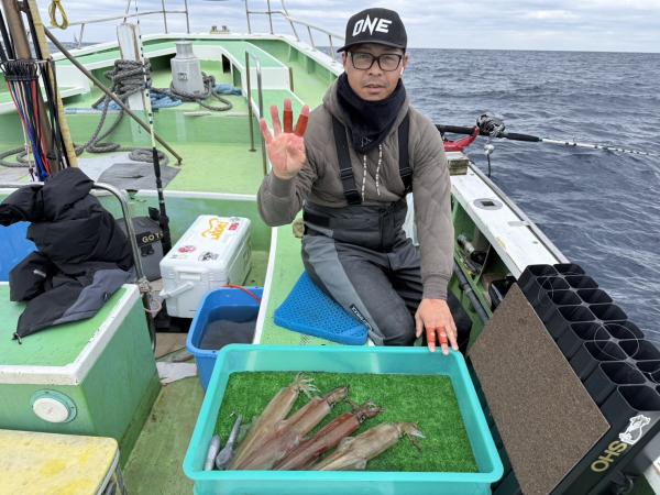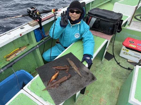 ヤバかったが、後半良いポイントに当たり良型のヤリイカで多点あり