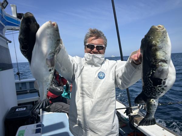 トラフグ3隻の高低釣果1.0〜3.5kg 0〜3匹