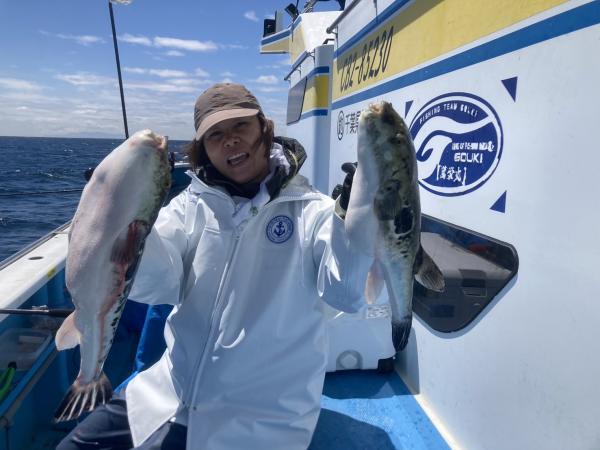 トラフグ2隻の高低釣果1.3〜4.3kg 0〜3匹