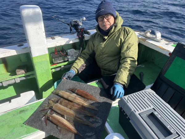 朝はスルメイカ狙いで1〜7杯で今日はヤリイカを